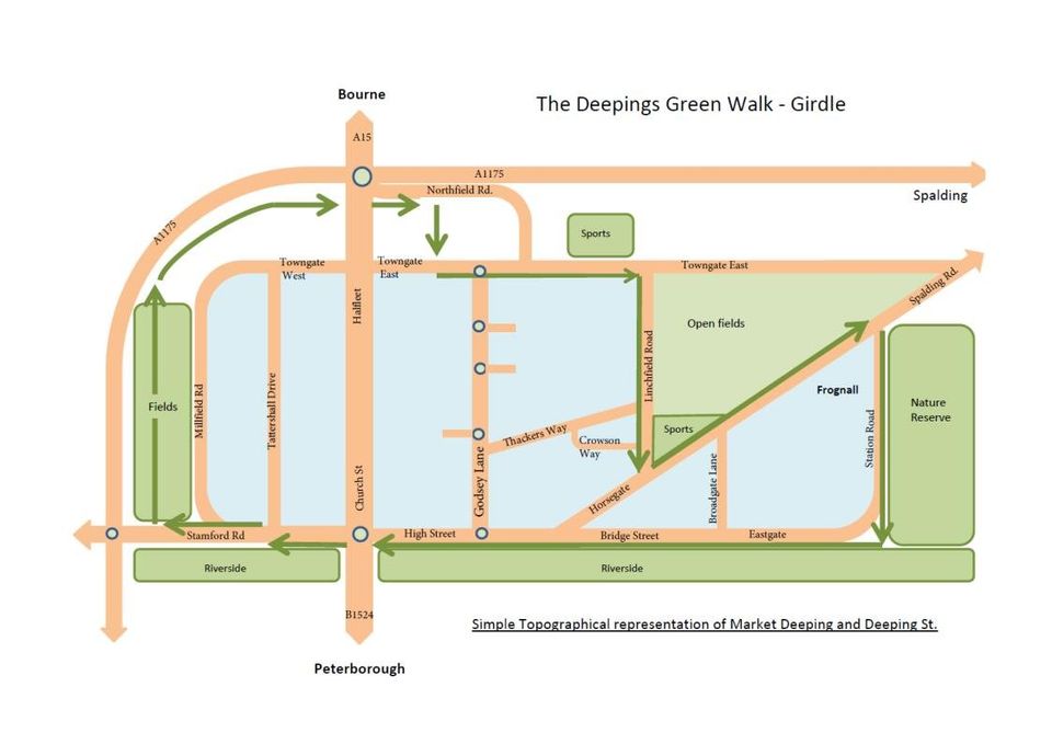 This is an accessible route that forms a complete circuit of approximately 9 miles around the joint areas of Market Deeping and Deeping St. James. The Green Circuit will be marked in manageable stages for leisure use. Walkers will be able to choose to enjoy shorter or longer sections, or to undertake the challenge of the complete circuit